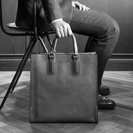 簡約洗鍊的現代輪廓,能完美襯托西裝的紳士氣韻。兼具公事包的品格氣質與托特包的隨興便利,是款風格獨具的俐落夥伴。